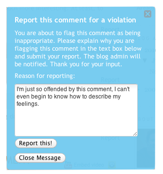 One of your Comment Settings is the option to activate a “Report” button giving your readers the option to report offensive comments and help you keep the comment section clean. This option is located in your Comment Settings page.