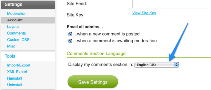 - Locate the “Comment Section Language” option at the bottom and select from the available translations.