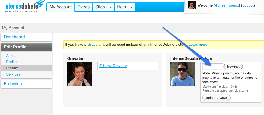 - What happens when you try to upload an avatar?